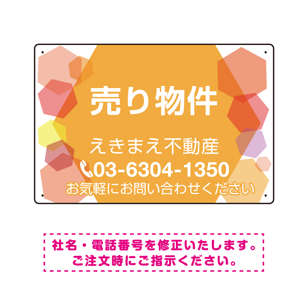 商品説明:売り物件 カラフルオレンジ デザインC オリジナル プレート看板 W450×H300 エコユニボード