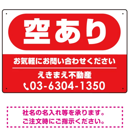 - 空あり レッド オリジナル プレート看板 W450×H300 エコユニボード