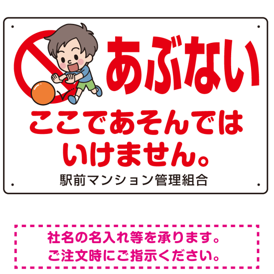 あぶない ここであそんではいけません 子供イラストB プレート看板 W450×H300 エコユニボード