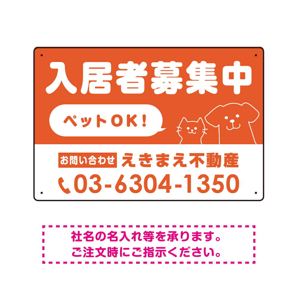 入居者募集中 ペットOK イラスト オリジナル プレート看板 W450×H300 エコユニボード