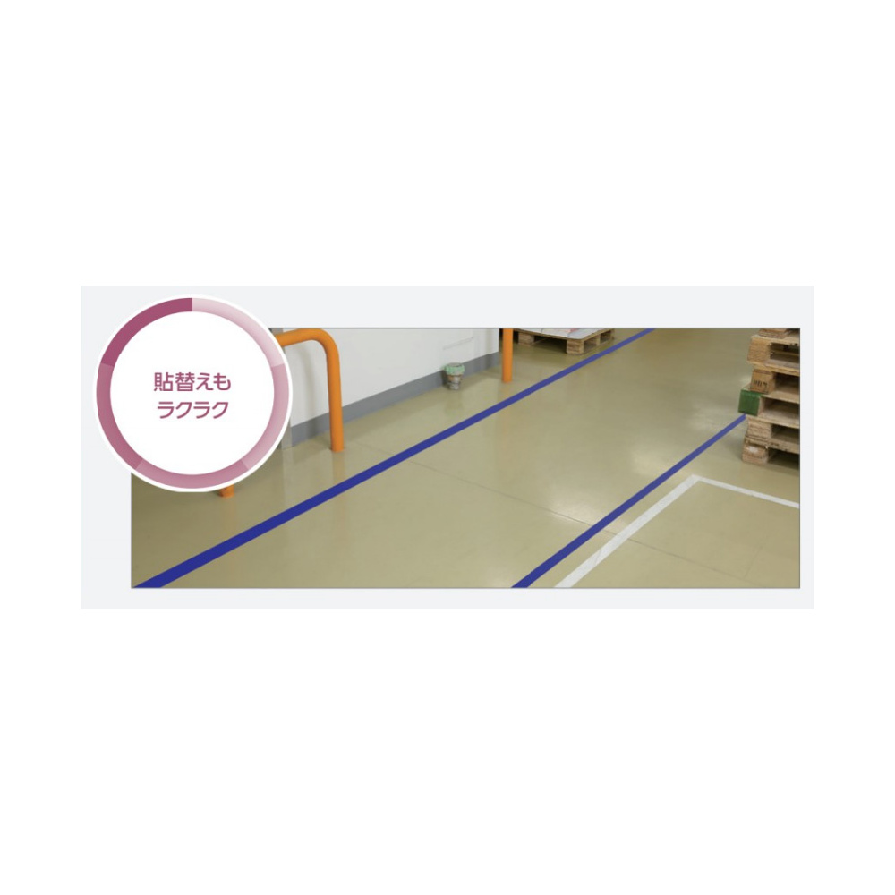 貼替えラクラク!粘着剤が残りにくい再剥離タイプの床面誘導テープです。