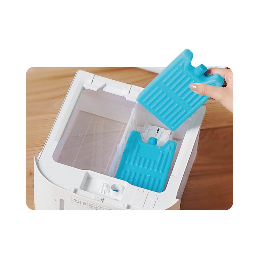 - 付属の「冷却パック」を凍らせてタンクに入れれば、もっとひんやりした冷風に!