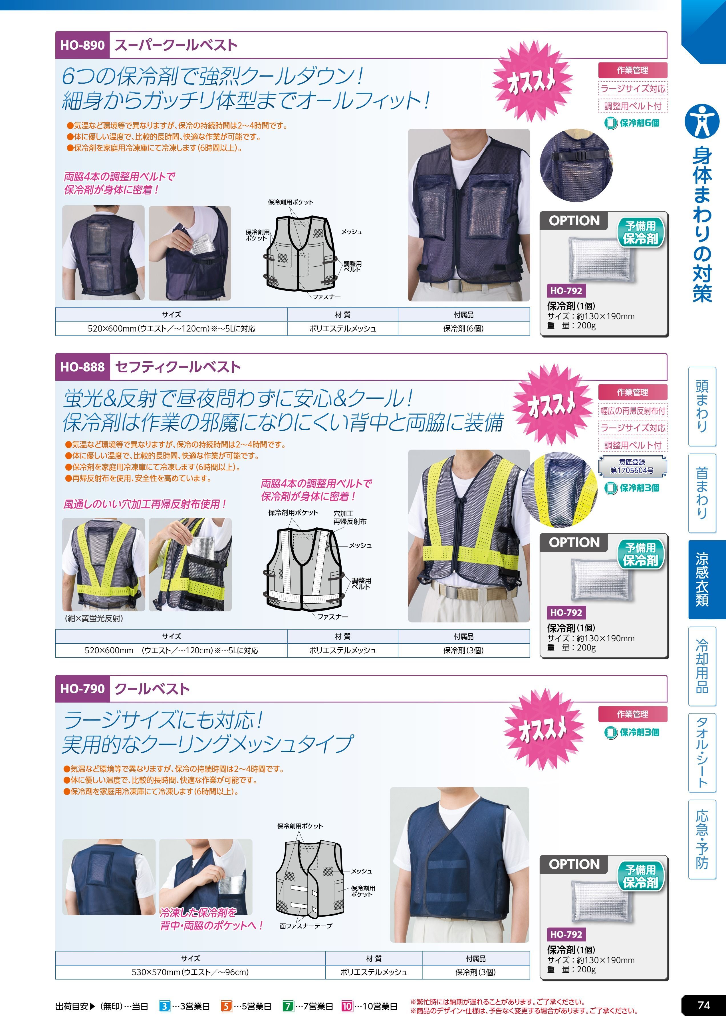セフティクールベスト紺黄 (HO-888)は、ユニット 熱中症対策用品カタログ 2026年版(166R) P.74に掲載されています