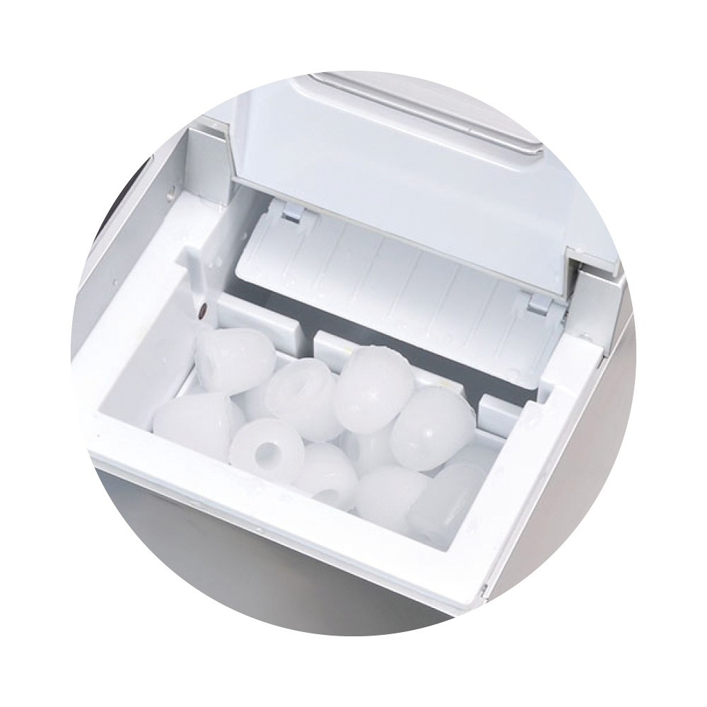 - 卓上小型 電源:AC100V コード長さ:約1.8m 消費電力:120W 製氷量:24kg/日(目安) 氷管理量約315g(氷35個)