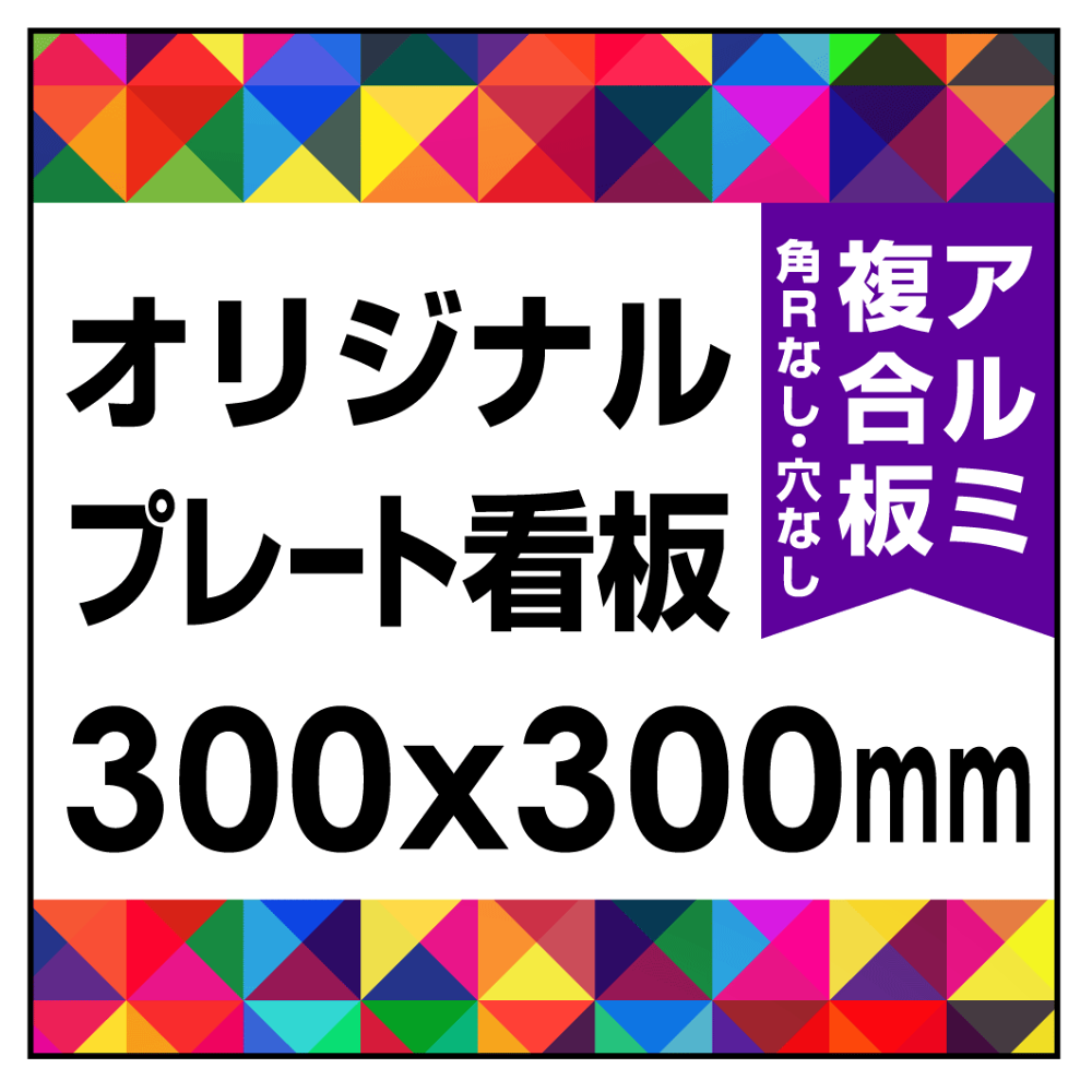 商品説明: オリジナルプレート看板 (印刷費込) 300×300 アルミ複合板 (角R無し・穴無し)