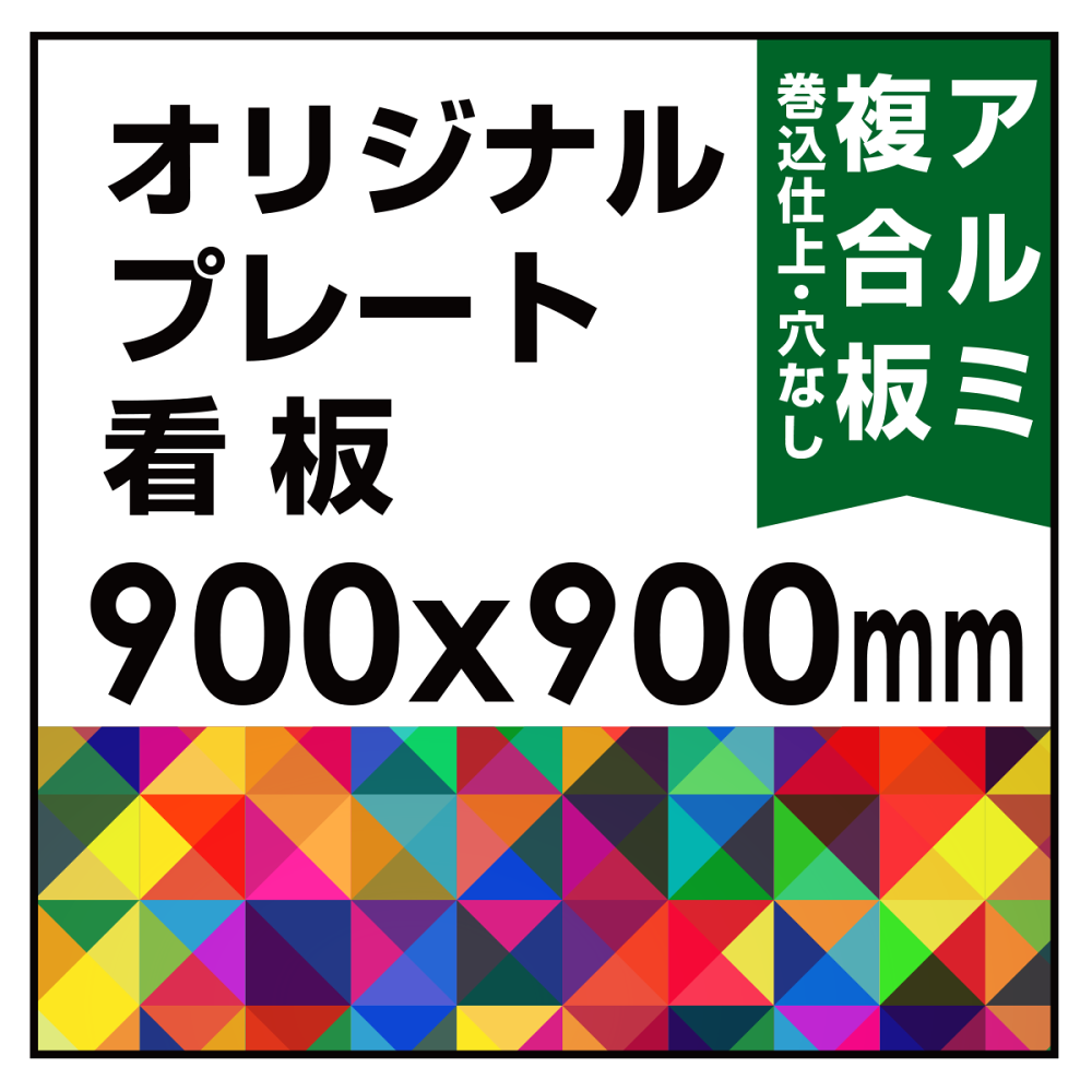 オリジナルプレート看板 (印刷費込) 900×900 アルミ複合板 (角R無し・穴無し) 小口巻込仕上げ ※個人宅配送不可