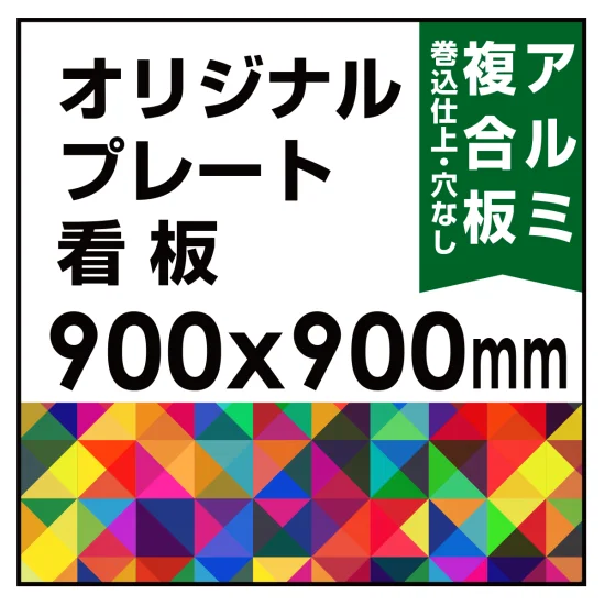 オリジナルプレート看板 (印刷費込) 900×900 アルミ複合板 (角R無し・穴無し) 小口巻込仕上げ ※個人宅配送不可 の商品詳細