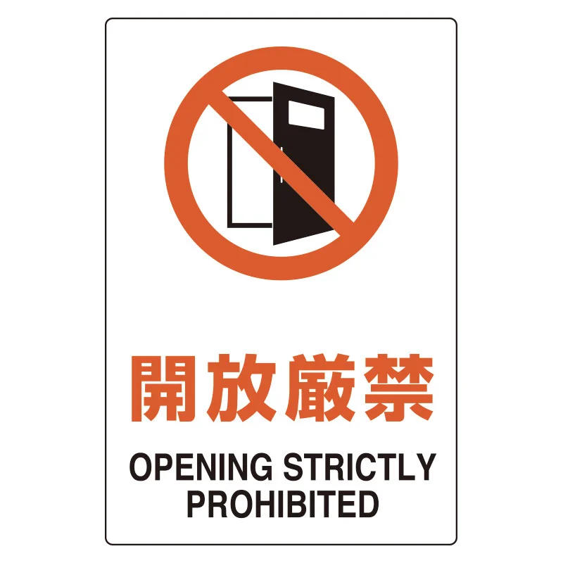 扉や設備の開放禁止を、ひと目で明確に伝えるステッカー標識。