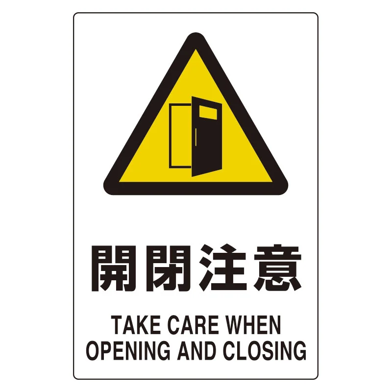 - 警告マークとドアのピクトグラムで認識しやすく、出入口や設備扉の安全表示として役立ちます。