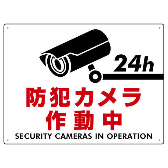 防犯カメラ作動中 白地/赤文字 オリジナル プレート看板 W600×H450 エコユニボード