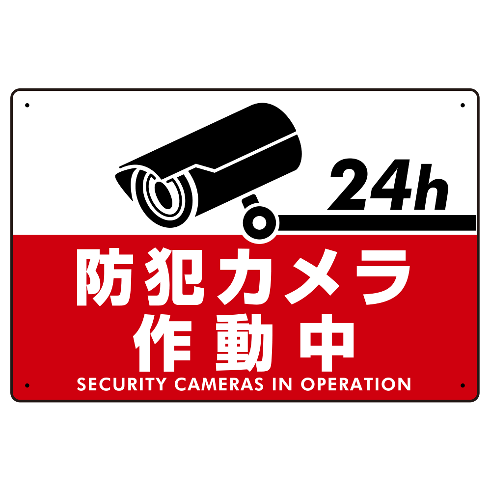 防犯カメラ作動中 赤地/白文字 オリジナル プレート看板 W450×H300 エコユニボード