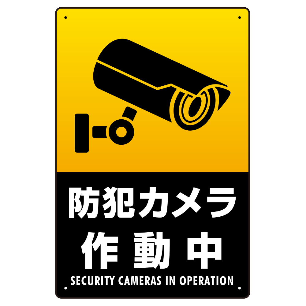 - 防犯カメラ作動中 タテ型 黒地/白文字