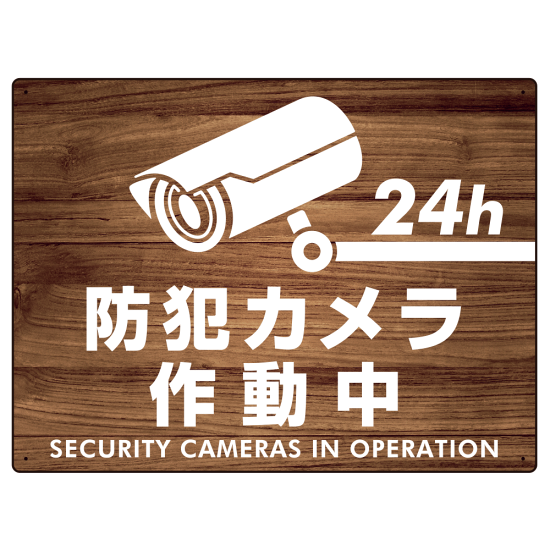 - 木目調(ケヤキ調)の防犯カメラ実施中プレート看板。デザイン重視のロケーションに最適です。