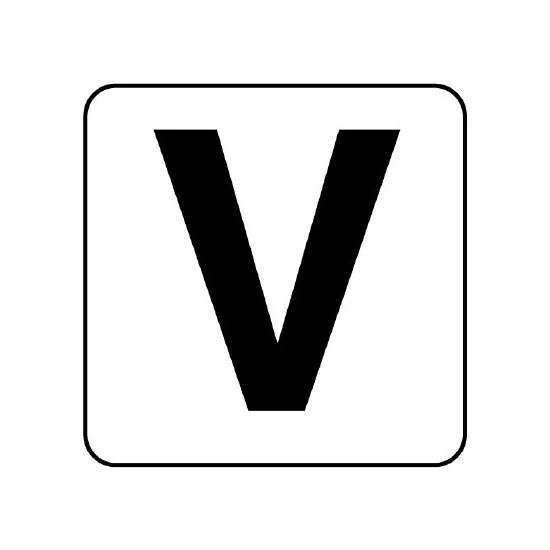 文字「V」を、ひと目で分かりやすく表示できるアルファベット表示ステッカー。