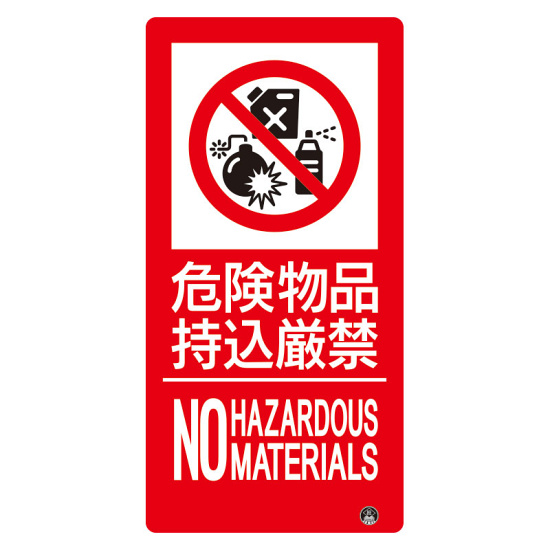 商品説明: 防火標識ステッカー 大サイズ 危険物品持込厳禁 縦 (828-809)