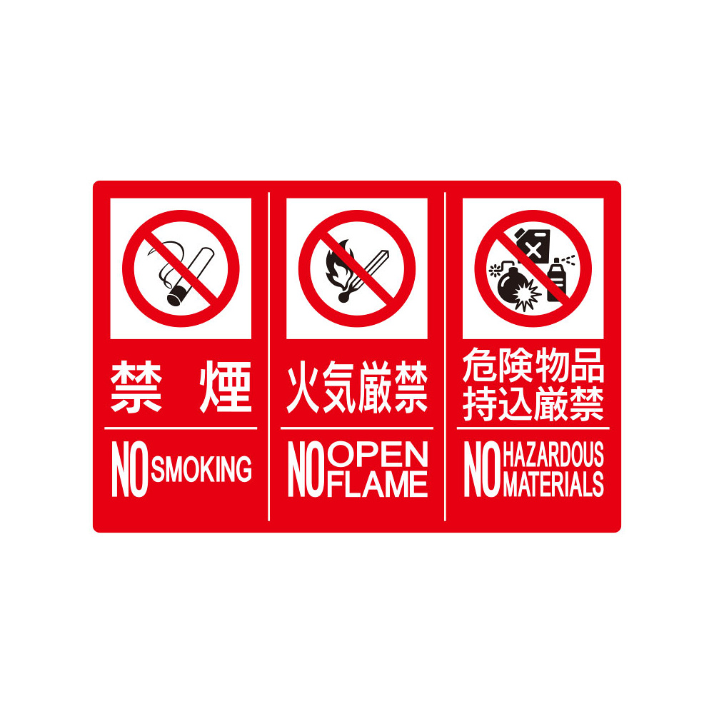 防火標識3連(禁煙/火気/危険)小 エコユニボード 300×450 縦 (828-818)