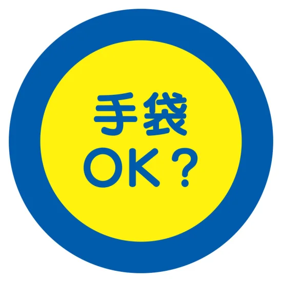 手袋着用の確認を、丸型で分かりやすく示せるチェック用ステッカー。