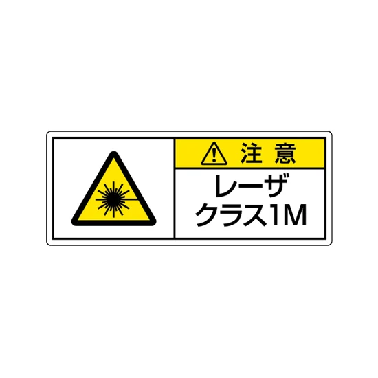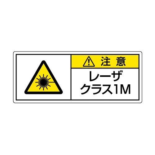 レーザクラス1Mの注意表示を、JIS準拠で分かりやすく伝えるステッカー。