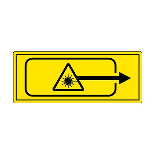 レーザの開口部を、矢印付きで分かりやすく示せる注意ステッカー。