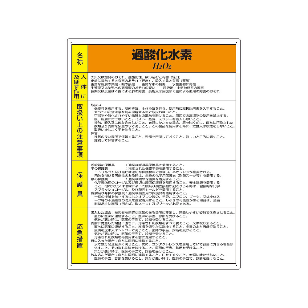 商品説明:特定化学物質標識 エコユニボード 600×450 過酸化水素 (815-82A)