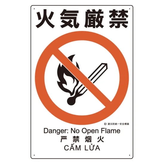 建災防統一標識(日・英・中・ベトナム 4ヶ国語) 火気厳禁 (363-13A) の商品詳細