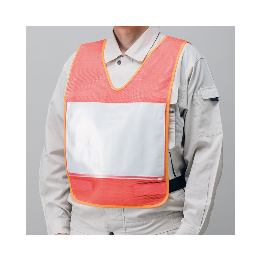 A4用紙ポケット付差し込み式ベスト 蛍光橙 (379-502)