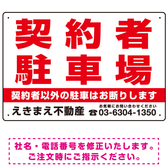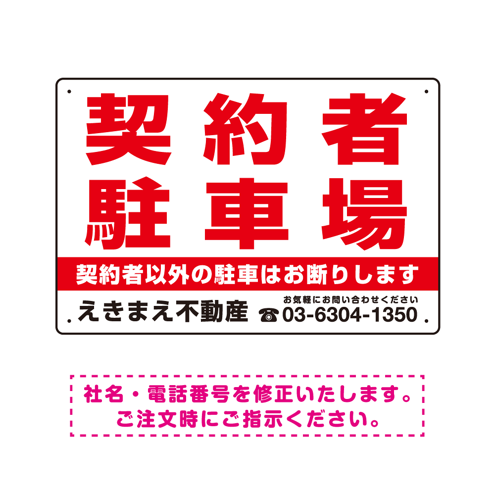 商品説明:契約者駐車場 赤文字 デザインB オリジナル プレート看板 W450×H300 アルミ複合板