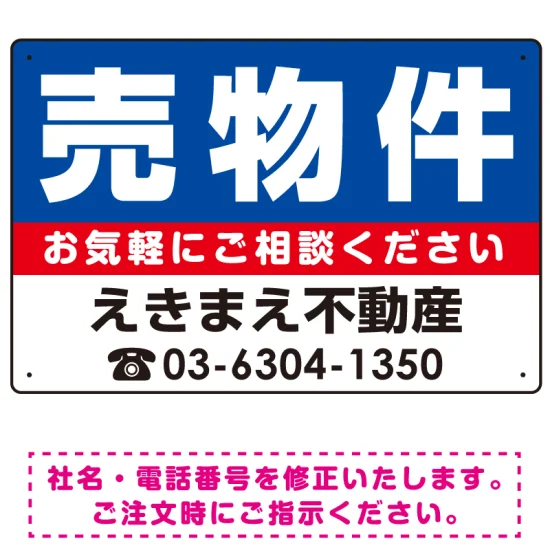 よくある質問:売物件 ブルー デザインB オリジナル プレート看板 W450×H300 エコユニボード