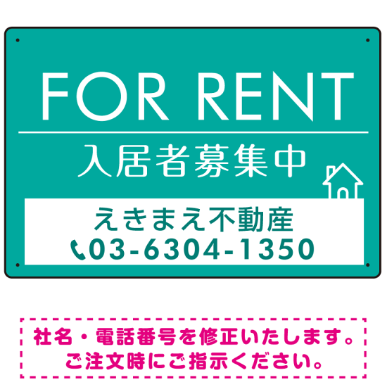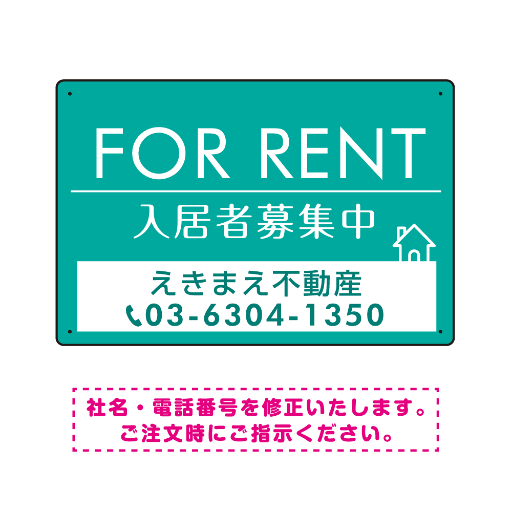 商品説明:FOR RENT 入居者募集中 エメラルドグリーン デザインA オリジナル プレート看板 W450×H300 アルミ複合板