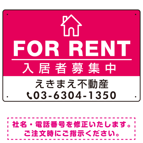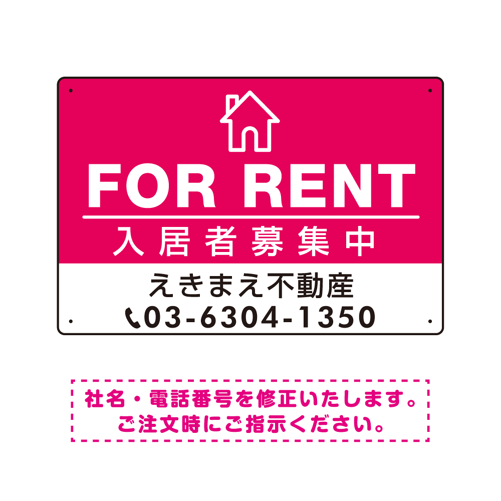 商品説明:FOR RENT 入居者募集中 ピンク デザインB オリジナル プレート看板 W450×H300 アルミ複合板