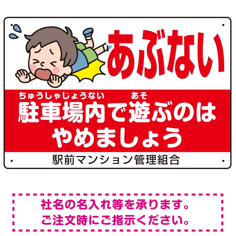 - あぶない 駐車場内で遊ぶのはやめましょう デザインB オリジナル プレート看板 W450×H300 エコユニボード