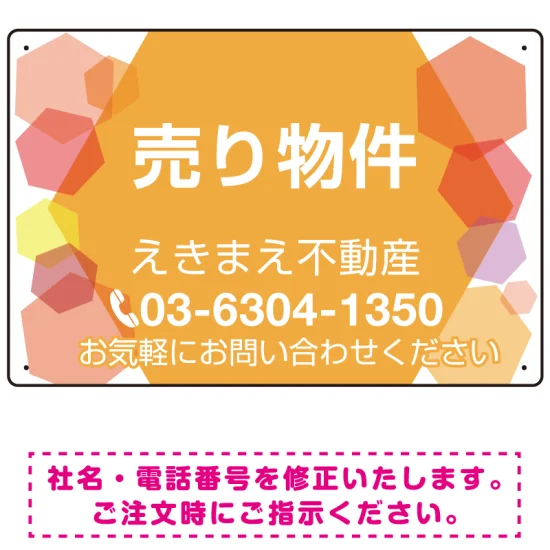 売り物件 カラフルオレンジ デザインC オリジナル プレート看板 W450×H300 アルミ複合板 の商品詳細