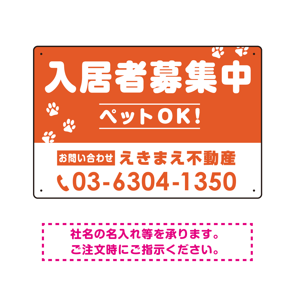 入居者募集中 ペットOK オリジナル プレート看板 W450×H300 アルミ複合板