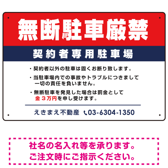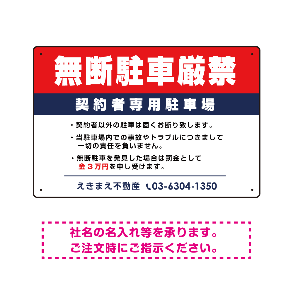 商品説明:無断駐車厳禁 契約者専用駐車場 オリジナル プレート看板 W450×H300 アルミ複合板