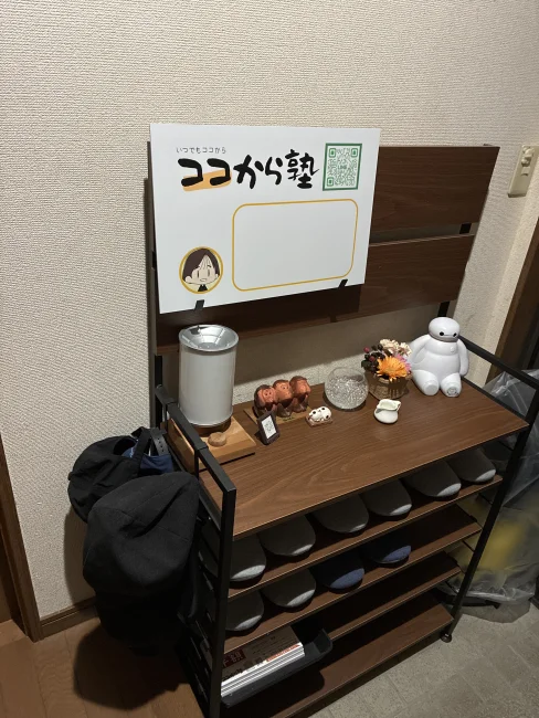 ふたつめは建物内に入った玄関につけました。こちらはメッセージボードを兼ねる予定です。