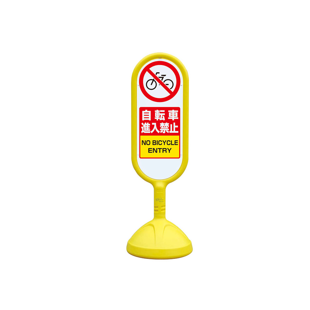 サインキュート 自転車進入禁止 イエロー 両面 (888-712BYE)