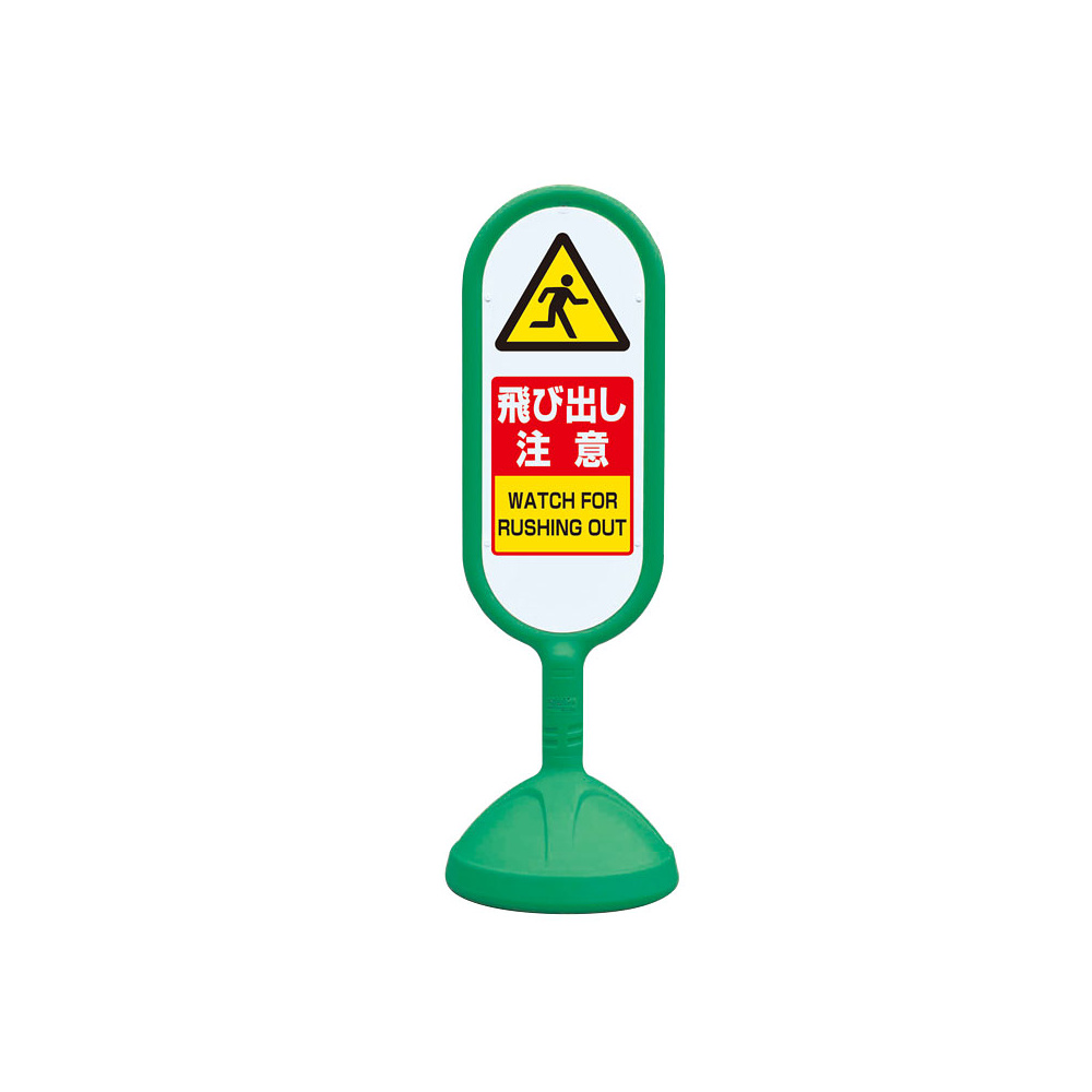 サインキュート2 飛び出し注意 グリーン 片面 (888-731BGR)