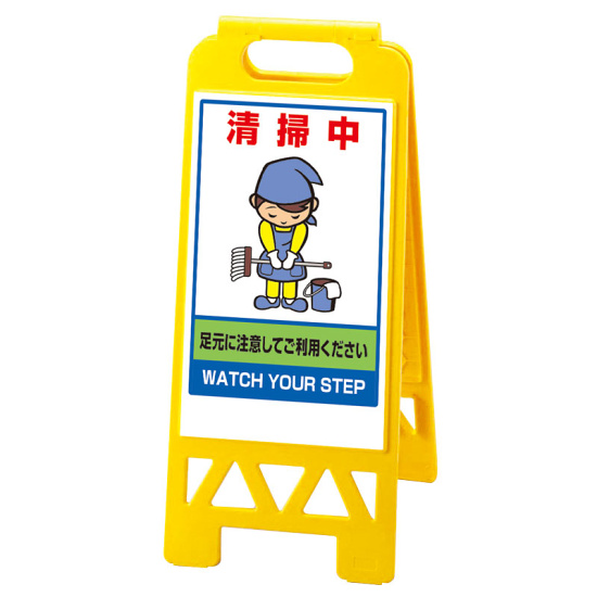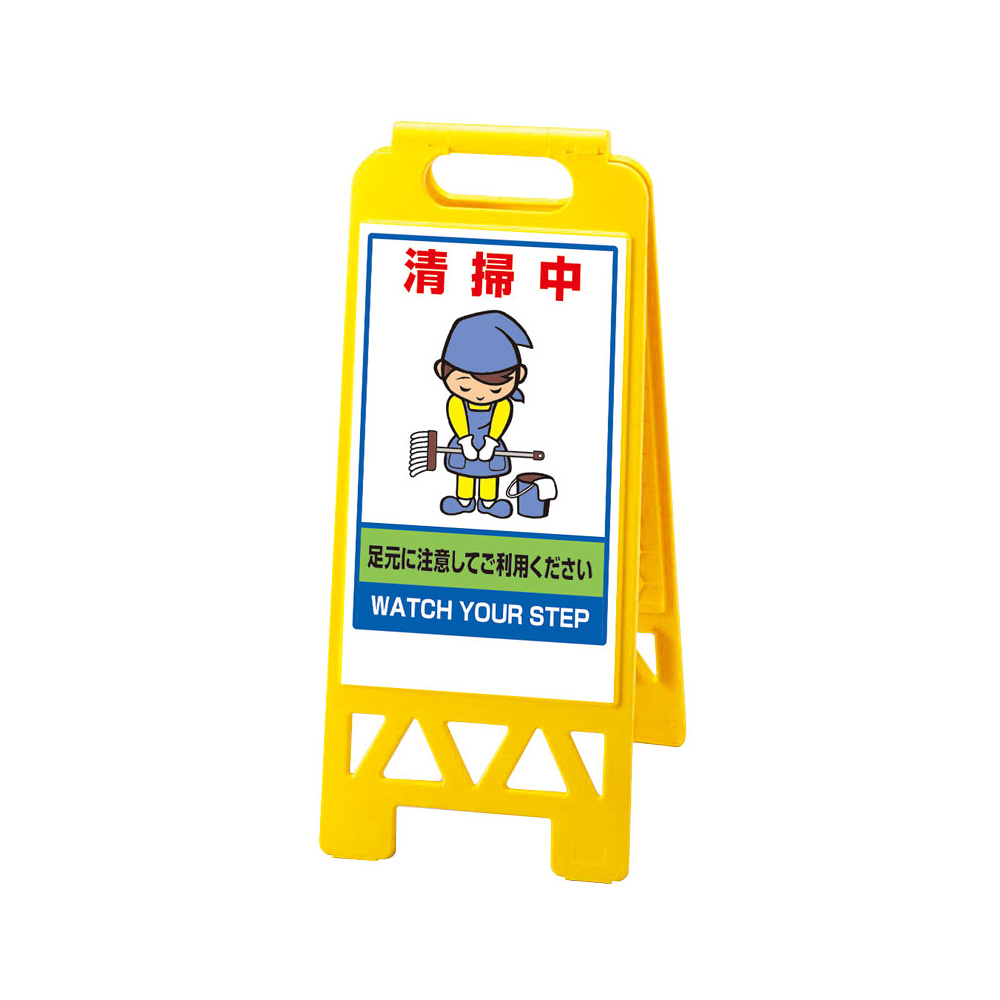 フロアユニスタンド 両面表示 清掃中 イエロー (868-374AY)