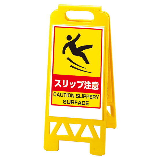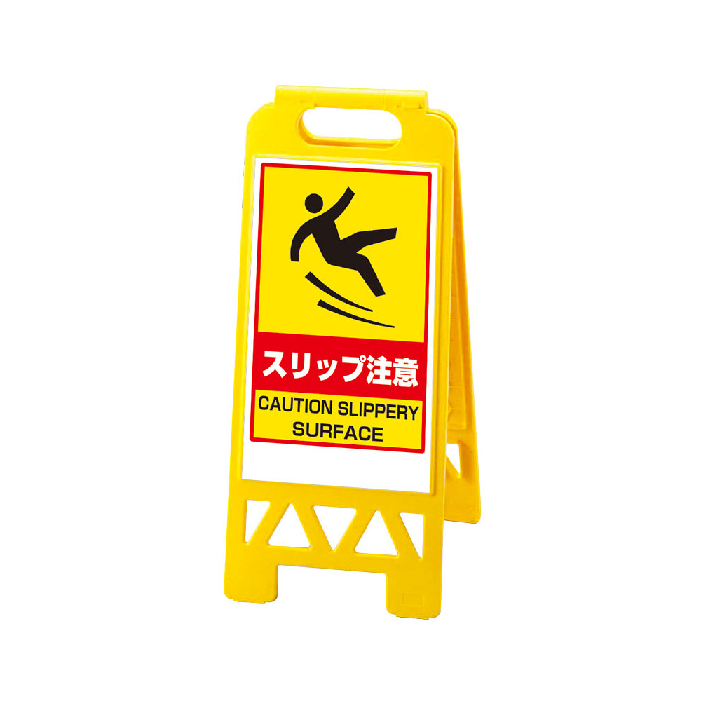 フロアユニスタンド 両面表示 スリップ注意 イエロー (868-375AY)