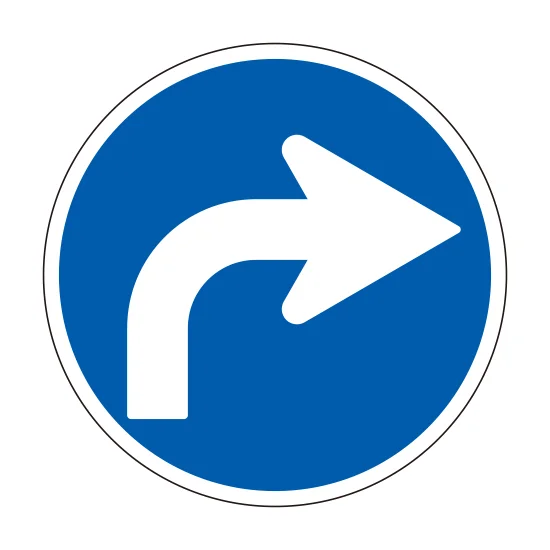 片面表示右折のみの進行ルールを、見やすく伝えられる構内標識です。