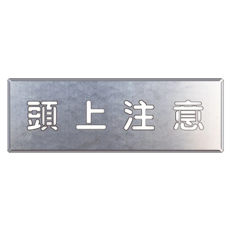 - 頭上に設備や障害物がある場所で、注意を促したいときに適した吹付け用プレートです。