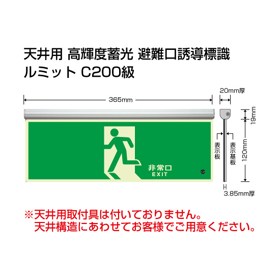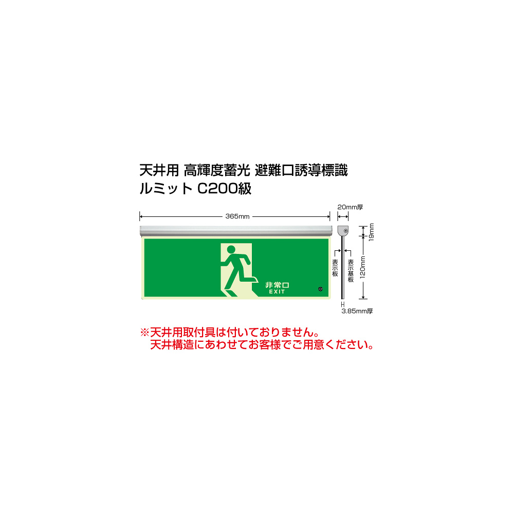 商品説明:高輝度蓄光標識 避難口天井用C200級 (836-010)