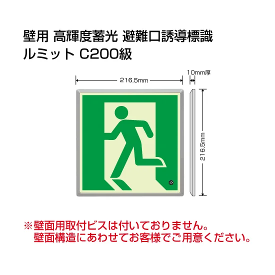 高輝度蓄光標識 避難口 C200級 ルミット 左向き 壁面用(樹脂フレーム付) (836-02)