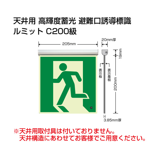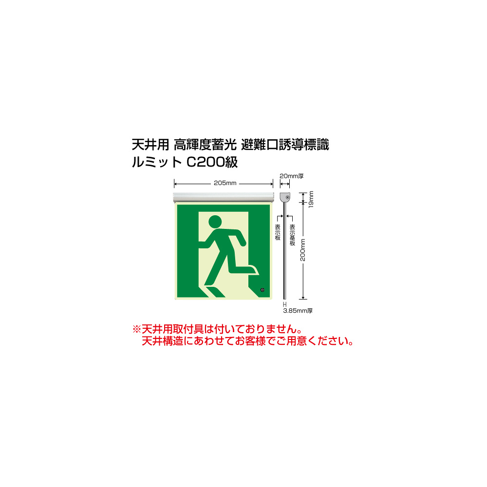 商品説明:高輝度蓄光標識 避難口天井用C200級 (836-020)