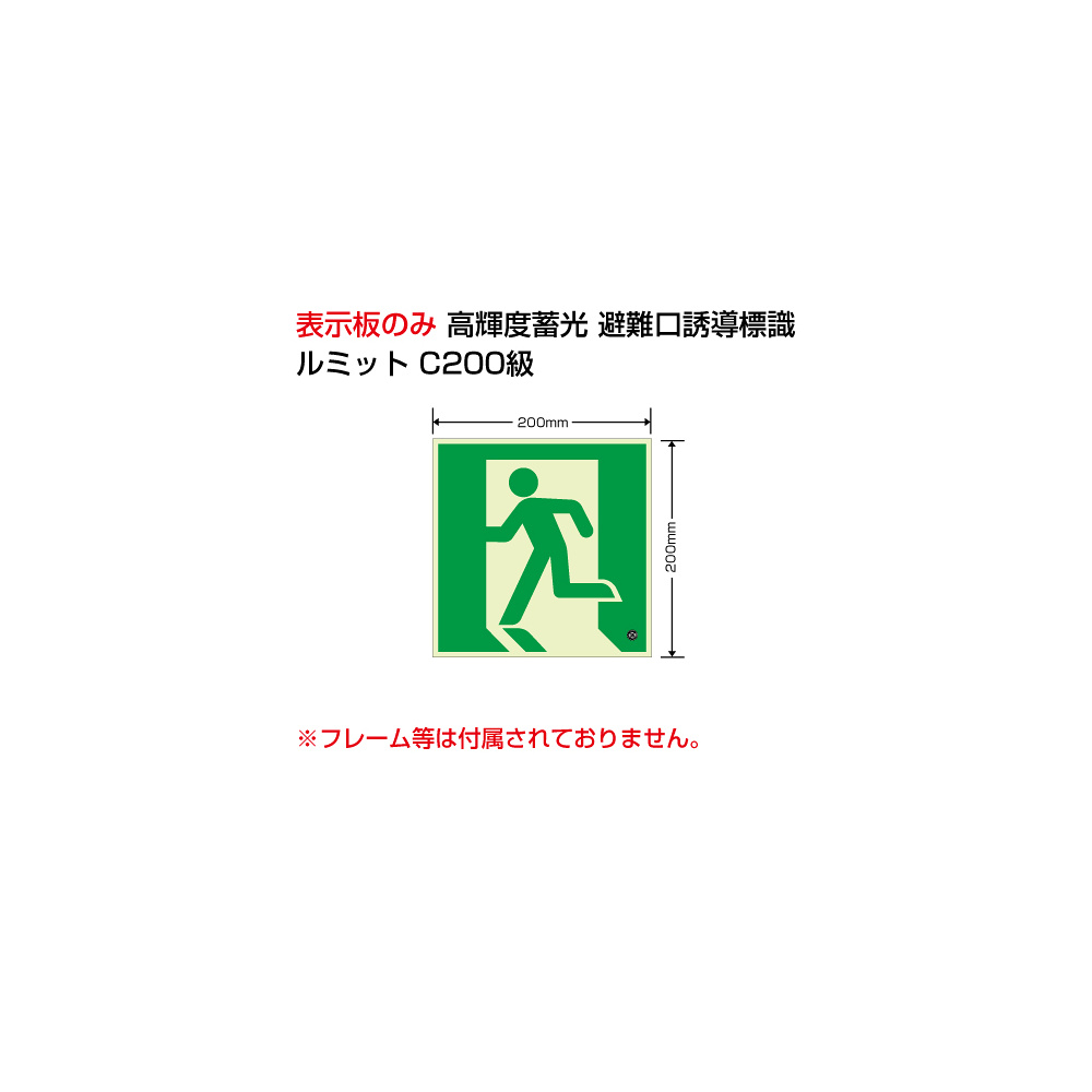 商品説明:高輝度蓄光標識避難口 C200級200角 (836-021)