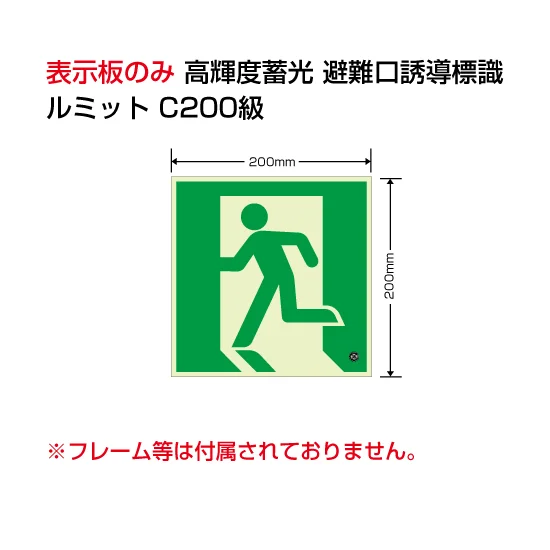 高輝度蓄光標識 避難口 C200級 ルミット 左向き 壁面用(表示板のみ) (836-021)
