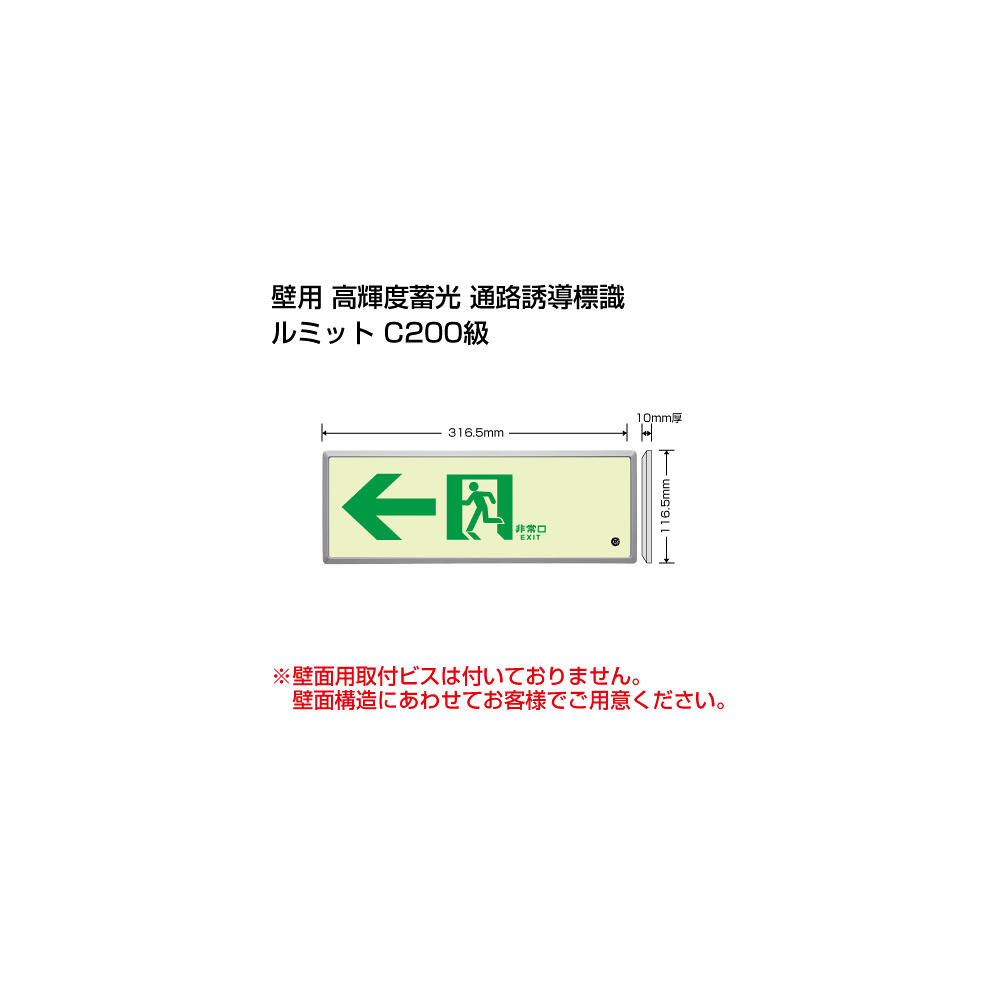 商品説明:高輝度蓄光標識←通路誘導FL付C200級 (836-03)