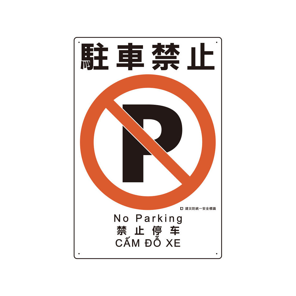建災防統一標識(日・英・中・ベトナム 4ヶ国語) 駐車禁止 (363-14A)
