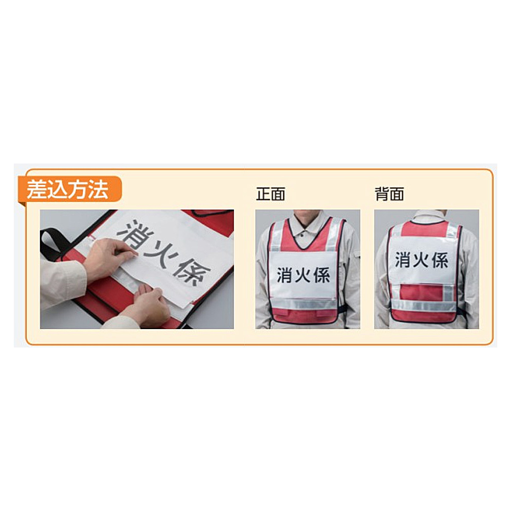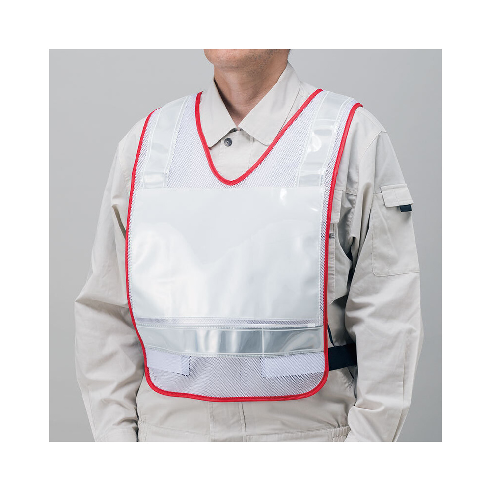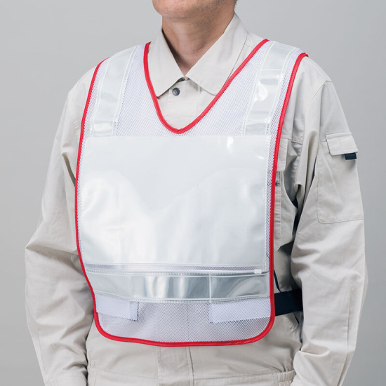 両面に付いたポケットにA4用紙を差し込んで表示できる反射ベスト。