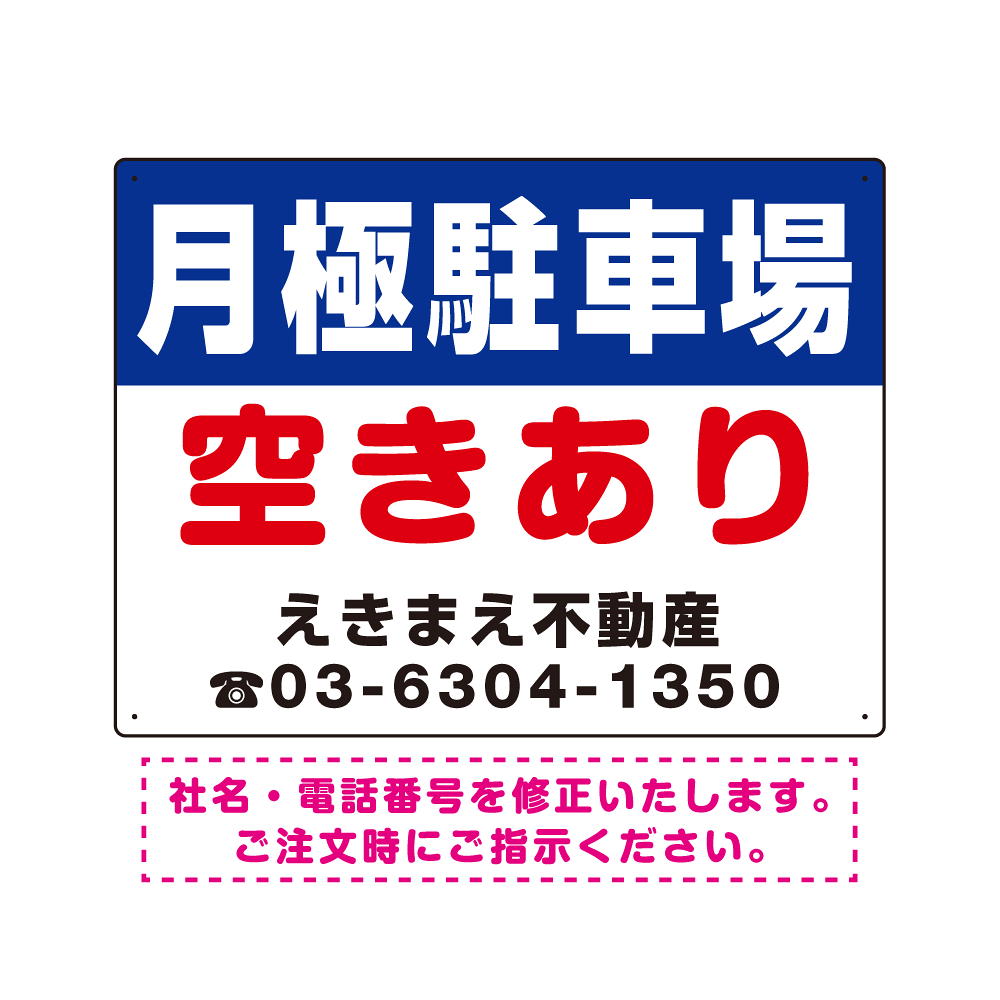 月極駐車場の募集に。社名と電話番号はご希望の内容に変更いたします。